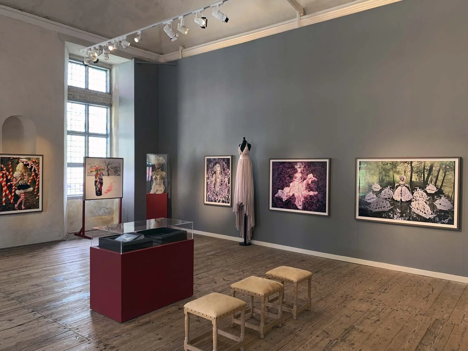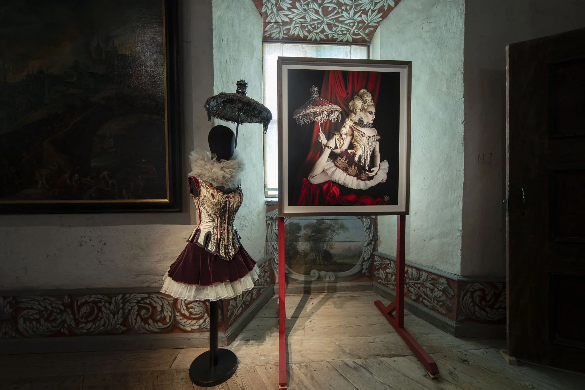 First created for Läckö Slott in Sweden, the exhibition features large-scale archival prints in custom-built museum frames. To enhance the immersive experience, Upoonwalls designed and constructed bespoke stands and modules to display original props and costumes used in the photographs — allowing visitors to step further into Mitchell’s fantastical universe.
