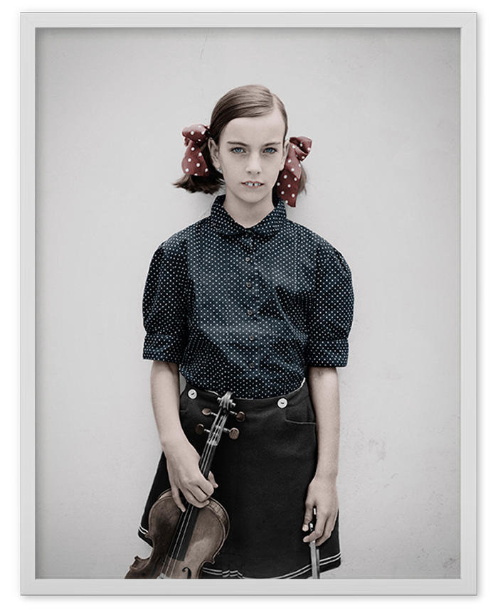 The Birthday Party eternalises the last days of childhood with timeless portraits that are at once hauntingly beautiful and provocative. Vee Speers explores the playful escapism of games of “dress ups” in childhood and the encompassing notions of performance and play. These portraits confront us with reminders of our childhood, creating enigmatic stories which blur the line between reality and fiction, highlighting our need to escape into fantasy.